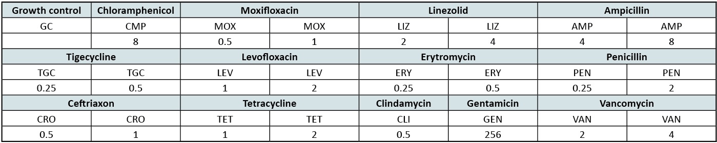 The kit is designed to test antimicrobial susceptibility of Gram-positive bacteria: enterococci and A,B,C,G streptococci. The kit contains 40 detection strips. Click table for larger image.